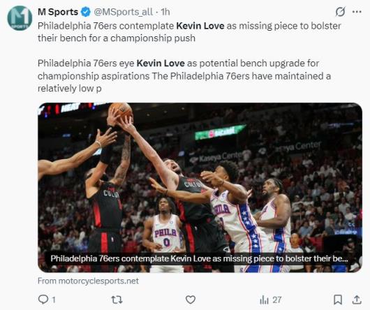 根據(jù)美媒M Sports的報(bào)道,費(fèi)城考慮引進(jìn)樂(lè)福以填補(bǔ)球隊(duì)替補(bǔ)陣容的深度,費(fèi)城希望以較低的預(yù)算幫助恩比德、喬治打造一支沖冠的陣容。