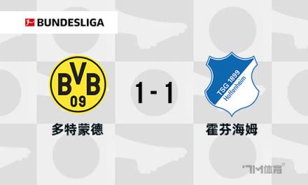 德甲:多特蒙德1-1霍芬海姆,雷納破門,拉爾森絕平