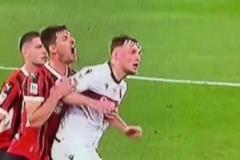 是點球嗎?博洛尼亞球員在麥肯尼跟防下倒地,裁判沒有表示
