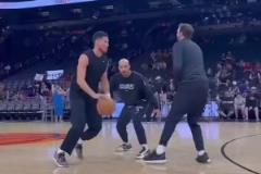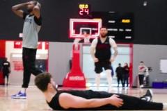 申京在今日訓練中絕殺!倒地做出了布克的招牌慶祝定格