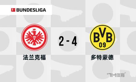 多特蒙德3連敗+7輪僅1勝,0-2負于法蘭克福排名跌至第10位