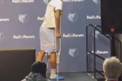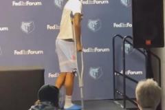 槍王下賽季見!莫蘭特拄拐參加灰熊賽季總結發布會