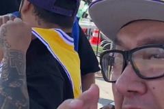 華子在LA街頭慶祝勝利:湖人一直放狠話,說5場拿下我們,今天都給我去死吧