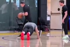 東契奇和助教比罰籃輸了,只能乖乖趴下做俯臥撐....
